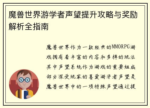魔兽世界游学者声望提升攻略与奖励解析全指南