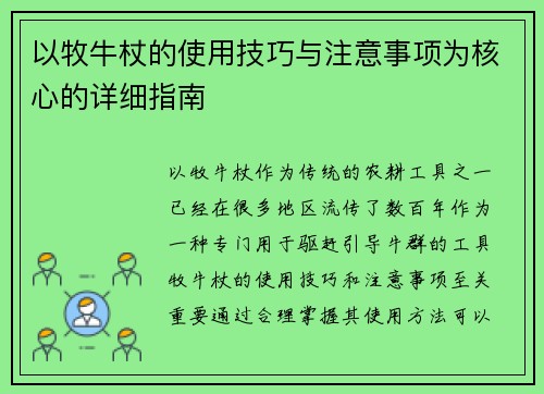 以牧牛杖的使用技巧与注意事项为核心的详细指南